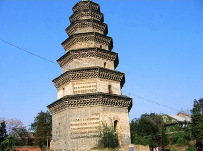 福胜寺塔在州治南关,天圣(公元1023—1027年)间创建,福胜寺塔又称隋塔,之所以称为隋塔,是将原由邓县运往开封的隋仁寿二年邓州兴国寺舍利塔铭,误认为福胜寺塔铭的缘故,塔原为十三层,元至元末兵毁,只保留现存的七层,塔自建至毁,中间多有修复,明清时期规划最大,有邓州八景之一“竹林禅观”之称,塔因得益其合理牢固的结构,至今仍巍然屹立。