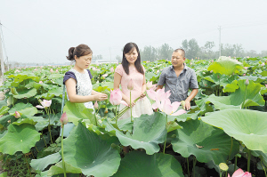 莲藕种植基地给杨营镇和周边村镇的村民也带来了收入。附近村镇的村民都愿意到莲藕养殖基地务工,平时除草施肥、管理田地,盛夏时节,采摘莲蓬,一个月有1500元~3000元的收入,村民们不用背井离乡,在家门口就能实现就业。