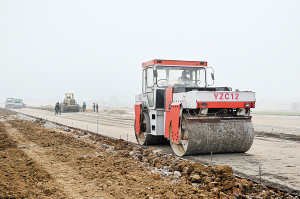 南阳新区条条新路呼之欲出。图为黄河路正加紧施工,该路南起迎宾大道,北至北外环路。