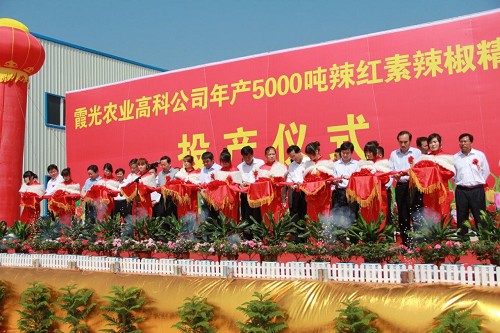 公司引进德国先进成熟的生产技术,从干辣椒中提取高附加值的辣椒红、辣椒精,一方面满足国内高端市场的需求,另一方面满足欧盟、北美、日本等国际市场快速增长的市场需求。公司的主导产品辣椒红、辣椒精是利用亚临界萃取技术,将辣椒粉碎、造粒,再通过溶剂萃取出辣椒中的辣椒红色素、辣椒精,然后浓缩、提纯,生产出辣椒红色素、辣椒精。本项目在生产过程中不产生任何废水、废气、废渣,完全符合清洁生产、循环生产的要求,是无污染、经济效益好的涉农项目。