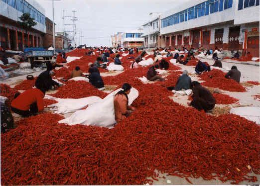 据统计,每逢辣椒旺季,每天到辣椒城“淘金”的商客达4万余人,日成交额在300万元以上,年交易量为10万吨,成交额为5亿元。