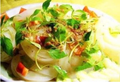 唐河凉粉:淀粉要从绿豆面中提取这样打出的凉粉才会显得滑腻爽口。