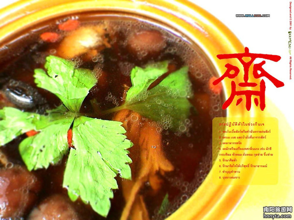 讲述南阳玄妙观文化,不能忘了“玄妙观斋菜”。它不仅与南阳其他风味名吃如唐河火腿、新野板面、镇平烧鸡、博望锅盔、社旗胡辣汤、南召白土岗辣子鸡、阎天喜饺子一样好吃,而且还因其是“天下一绝”,而驰名海内外。