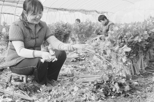 李店镇丙玉合作社社员在收获反季节蔬菜