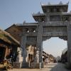 穿过戏楼进入万人庭院,即会馆的中心大院。院内全部用一尺见方的青石铺地,中铺甫道,甫路两边系条石,有柱洞可以搭棚,甫路左右庭院及两厢分别为男女观众场地,院内可容万人看戏,故又称万人庭院,现在我们参观的是石牌坊,坐落于大殿前3米高的月台上,其分左中右三座。