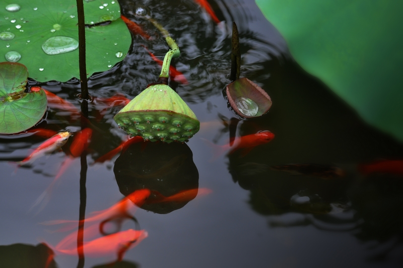 鱼戏池塘