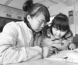 去年开学时,孙琳琳因没买饭卡,饿着肚子坐在教室里。细心的周靖惠看到后,悄悄来到她身边,拿出了自己的饭卡。