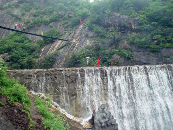 五道幢全长15公里,景区面积6平方公里,由五道美丽且风格不同的风景线组成,景区内群山环抱的峡谷间玉女潭、仙人桥、喷珠瀑、线泉穿石、美人出浴、仙人脸谱、太极穴、姐妹同桥等数十各景点引人入胜。最为著名的中原奇观"阳关三叠",三瀑相连,逶迤蛇行,飞流直下,景象万千。景区峡谷奇特,断岩峥蝾,悬崖陡峭,鬼斧神工。谷中河水清澈,缓如垂练,急如抛珠,瀑泻如注,轰鸣而下,山水相映相辉,如诗如画,犹如进入童话世界!蜿蜒在五道幢青山幽潭间的中原第一栈道--刀棱山栈道,仿佛是一条银线,把沿线的道道美景串成一根光彩夺目的项链。整个栈道,或缠绵绝壁,或石块铺地,或栈桥凌空。无论路、桥、亭、阁,都充盈着山林野趣。建筑风格朴素洁雅又灵活多姿。在栈道上,有的亭阁依树而立,有的则以树为中柱。人们向树小憩、临阁观景,别有一番风味,让游人流连忘返。