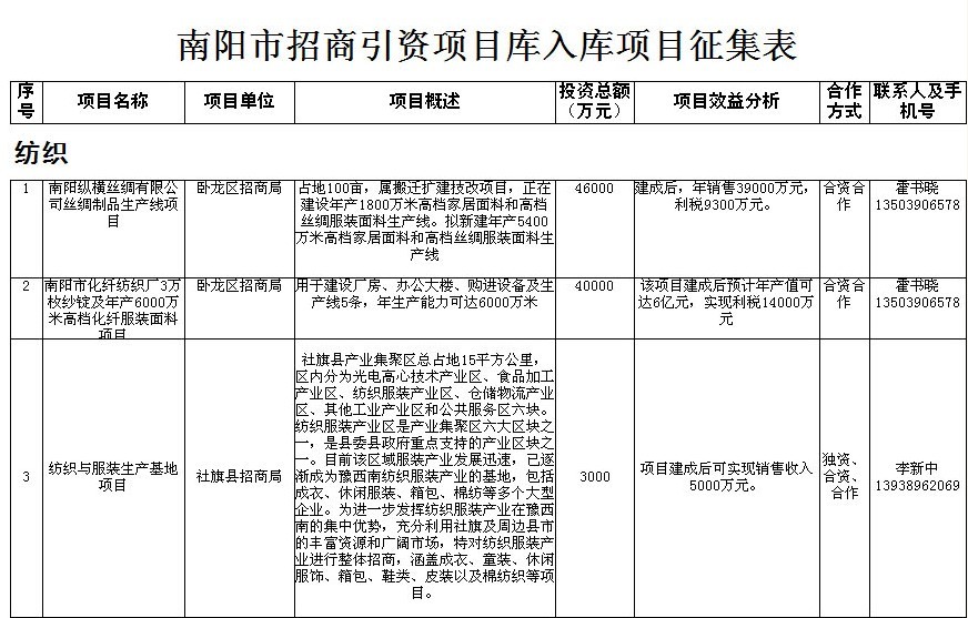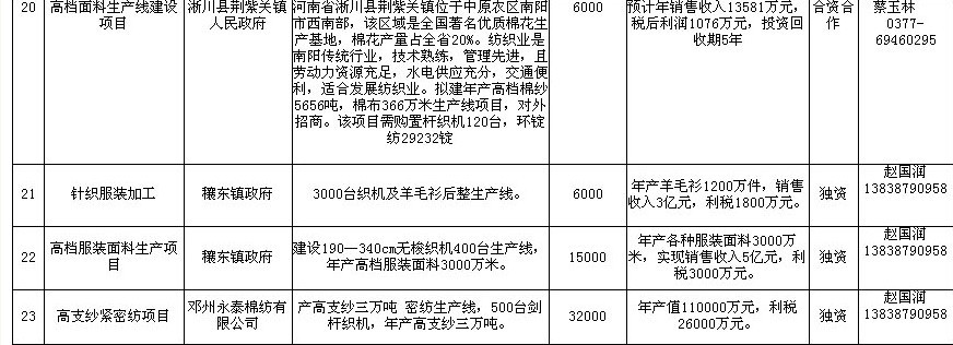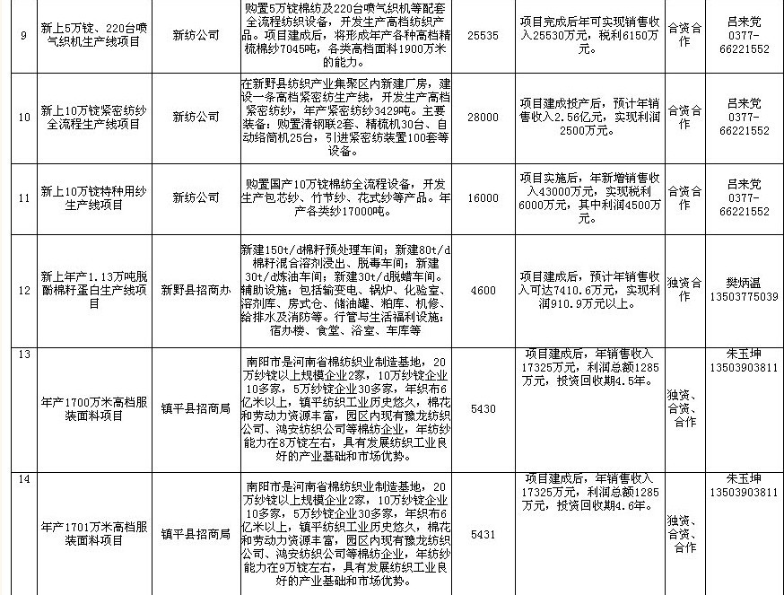 新野县招商项目