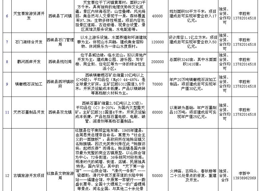 新野县招商项目