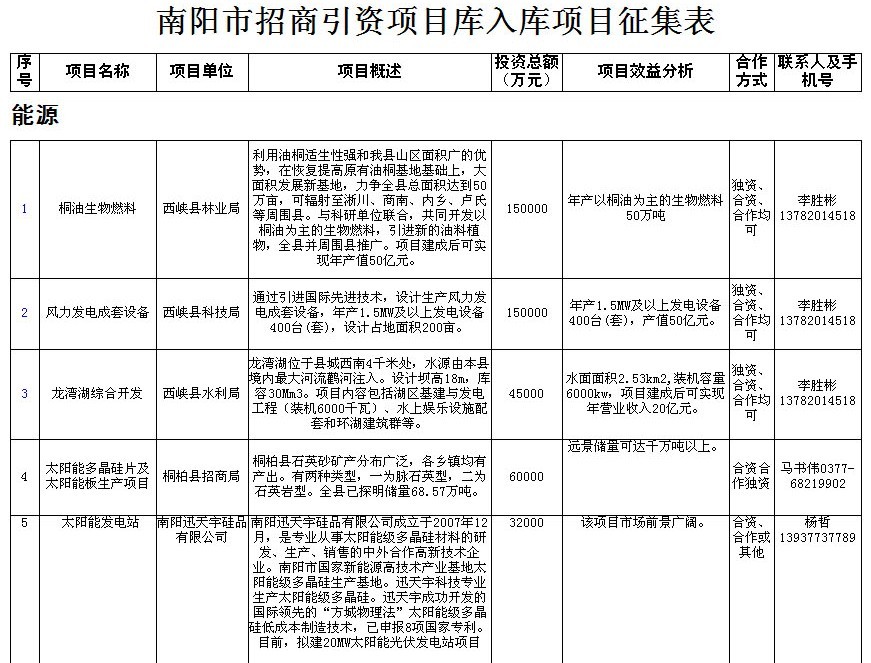 新野县招商项目