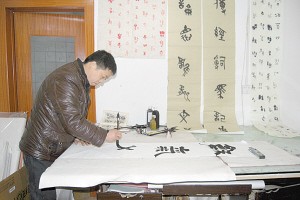 付出总有回报。1992年,他参加了镇上举行的书法比赛,初试牛刀,就获得了第一名,这给了他极大的激励。他开始在街道上摆字摊,利用春节前的时间卖对联。