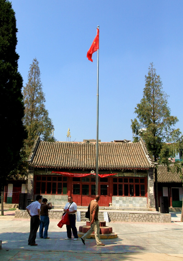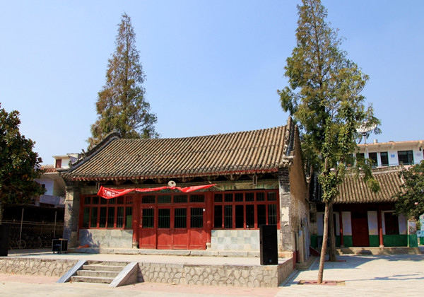 汲滩陕山会馆位于城东20公里的汲滩镇中学校院内。是外地旅邓商人聚会议事的地点。也用来敬神感灵,祈福禳祸,交流信息,接待商人和停放货物的地方。明清时期,邓州经济活跃,在邓州兴建的会馆有15处之多,在这些会馆中,以汲滩的“陕山会馆”最讲究。会馆内有大殿、拜殿、戏楼、钟楼、鼓楼、春秋楼及石牌坊等,气势雄伟,巍巍壮观。汲滩镇紧靠湍河,又是赵河入湍处,且东边与新野的上庄、王集乡毗邻。全镇地处平原,地势平坦。湍河自西由后湾入境,赵河自北由李洼入境,至后湾汇入湍河,东流折向南,过刁堤入新野县境。在清代湍河水深,汲滩镇是邓州水路货运的集散地,非常繁华,有“小汉口”之美誉。因此,陕山会馆当时经济是很活跃的,有大批商贾集此地。现存的陕山会馆,中线上有卷棚三间,大殿三间。大殿两侧各有陪房两间,构成一个整体,全系砖瓦结构。主房全出前、后檐,歇山式。卷棚进深8.7米,长11.6米,高7米;前有月台,月台高0.5米,宽4米,长9.5米;大殿进深11.6米,高8米,陪房进深6.5米,长7.2米,高5米。卷棚与大殿间有近2米的间隔,房檐相接,显得紧凑,建筑高大雄伟,结构严整,保护较好。