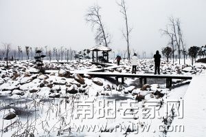 [摘要]2月5日至6日,我市喜降瑞雪。武侯祠内,“诸葛草庐”银装素裹,卧龙潭犹如一幅水墨画,吸引着广大游客冒雪观赏(图)。白河两岸美轮美奂,居民们走进自然,踏雪寻梅,尽情享受大雪带来的喜悦