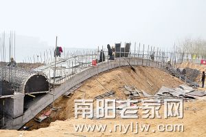 3月11日,记者在三里河入河口处看到,施工现场一派繁忙景象,钢筋混凝土板拱桥初具规模。拱桥的基桩、平台、桥台、承台、立拱、腹拱、侧墙已完工。4月份,拱桥后期装修部分可完工。卧龙大桥西侧的拆迁全部完成,即将进行绿道建设。淯阳桥下混凝土浇灌已经完成,即将进行护栏安装。