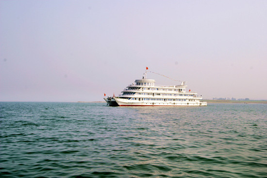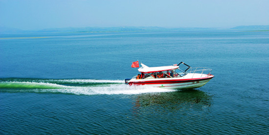 各位朋友,游船就要启动了,请大家注意安全,救生衣就放在您的座位下面。丹江水库因丹江大坝蓄水而得名。丹江,古称黑水、粉清江,后因尧帝长子丹朱在此治水有功,死后埋葬于此而得名。据《淅川厅志》记载:“丹朱墓,城西北七里”。现在的老城镇确有丹朱墓的存在。丹江发源于秦岭凤凰山,出商南,经月亮湾,流入淅川境内,在淅川流经9个乡镇,自香花镇台子山向南汇入汉江。丹江全长378.6公里,俗称“八百里丹江”,其中在淅川境内长116.6公里,是汉江的最大支流。