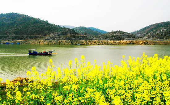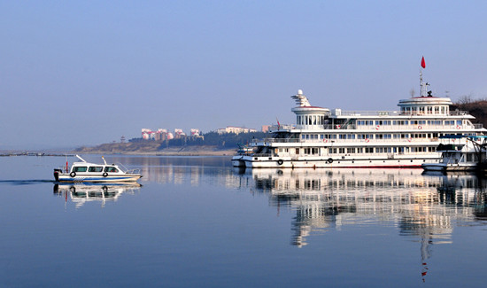 我们现在看到的是丹江沿岸最大的码头--宋岗码头。这是一座花园式客运码头,按照丹江水库二期工程的要求规划设计的,位于172米高程以上,水位上升后,码头就会成为一个三面环水的小岛。车就停在码头停车场内,我们从这里乘船游览丹江水库。