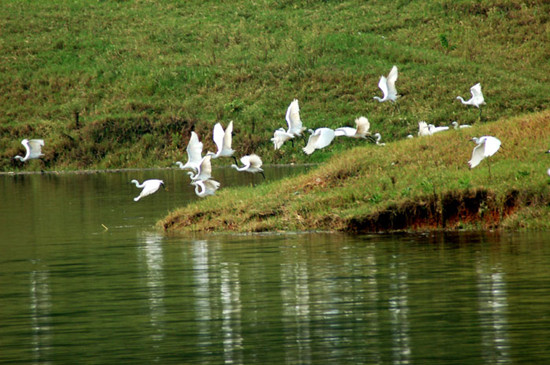 烟波浩淼的丹江水下是我们曾经的家园,现在却成了鱼类水族的栖息之地。库内有各种鱼类水族30多种,常见的有鲑鱼、武昌鱼、红尾鱼等。目前,“丹水”牌鱼已经通过了国家农业部无公害农产品认证。由于丹江位于南北气温的交汇处,气候温和,不冷不热,因此丹江鱼既有夏季鱼的特点(夏鱼中段好吃),又有冬鱼的特点(冬鱼身好吃),还有春鱼和秋鱼的特点(春鱼头好吃,秋鱼尾好吃)。因为丹江水质清纯、无污染,所以鱼的肉质细嫩,味道鲜美,让人食后回味无穷。尤其是红尾鱼(又称红板鲤鱼),更是独一无二。红尾鱼是鱼中珍品,其特色是肉质细腻,食之鲜嫩,而且没有一点泥腥杂味。清炖一条丹江鱼,盛一碗浓浓的鲜鱼汤,把烙好的葱油饼往鱼汤里一放,这就是最地道的丹江渔家饭。相传,丹江还因产“得者多寿”之称的丹鱼而得名。晋代葛洪在《抱朴子》一书中说:用丹鱼血涂足心,过河如走平地。祝愿大家游览丹江水库时,能有幸见到这种传说中能避水的神奇丹鱼,你将在人生征途上一路顺风。