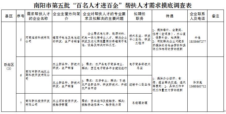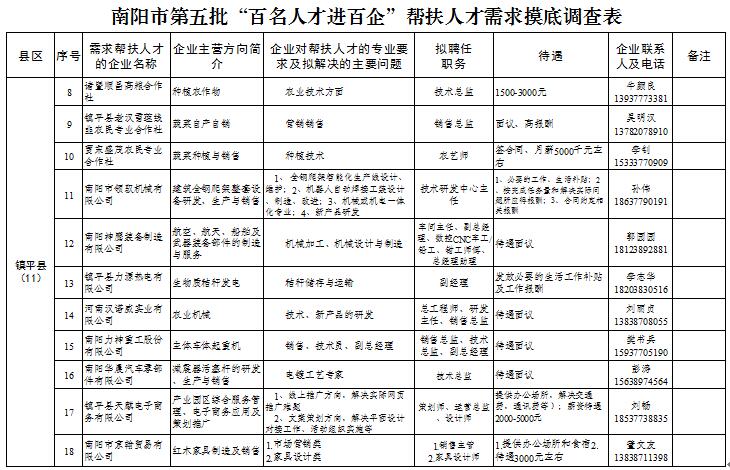 [摘要]南阳市第五批“百名人才进百企”帮扶人才需求摸底调查表